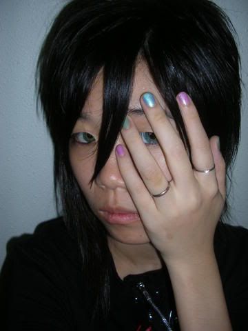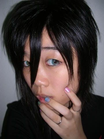 today go alice shop... and my hair i do myself want... but not really nice... i also dun know how to make it stand... haiz... keep drop drop... dun care... just do it... xp... then go home... take few photo... haha... self take photo myself... wahaha... mi very zhi lian... haha... okie la... let you enjoy some... wahaha...
